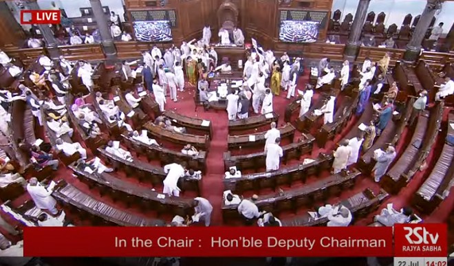 आज भी संसद के दोनों सदनों में जबरदस्त हंगामा हुआ। राज्यसभा में तो हंगामा और भी ज्यादा रहा। इसी वजह से राज्यसभा की कार्यवाही कल तक के लिए स्थगित करनी पड़ी। दरअसल, जैसे ही केंद्रीय आईटी मंत्री अश्विनी वैष्णव ने पेगासस मामले में बोलना शुरू किया विपक्षी सांसदों ने जासूसी बंद करो के नारे लगाने शुरू कर दिए। राज्यसभा में हंगामा तब बढ़ गया जब पेगासस मामले पर अश्विनी वैष्णव बयान दे रहे थे उसी समय विपक्षी सांसदों ने आईटी मंत्री के हाथों से कागज छीन लिया और उसे फाड़कर पीठासीन अध्यक्ष की ओर फेंका।