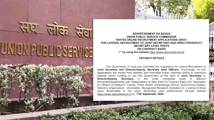 UPSC ने लेटरल एंट्री से होने वाली नियुक्ति का प्रस्ताव रद्द कर दिया है। UPSC ने 17 अगस्त को लेटरल एंट्री के जरिए 45 पोस्ट के लिए वैकेंसी निकाली थी। केंद्रीय कार्मिक मंत्री जितेंद्र सिंह ने मंगलवार 20 अगस्त को UPSC चेयरमैन से नोटिफिकेशन रद्द करने को कहा। उन्होंने कहा कि PM मोदी के कहने पर यह फैसला लिया गया है।