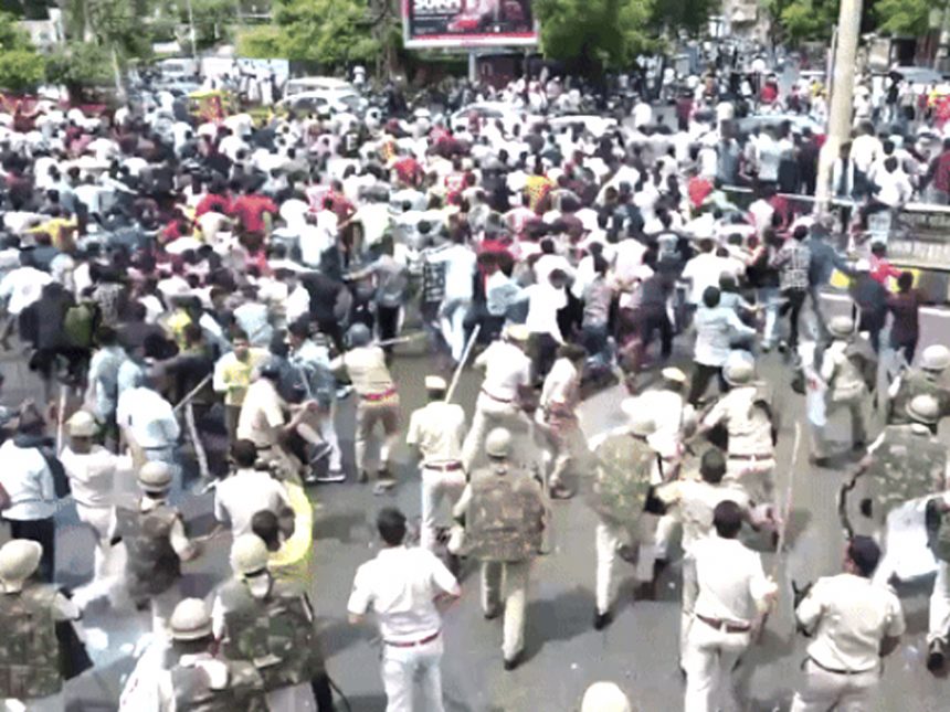 सोमवार सुबह 11.30 बजे से शाम 4 बजे के बीच कई बार पुलिस को लाठीचार्ज करना पड़ा। शाम 4 बजे लोग कलेक्ट्री की तरफ बढ़े तो पुलिस ने लाठीचार्ज कर उन्हें खदेड़ा। लोगों की तरफ से पुलिस पर भी पथराव किया गया। जानकारी के अनुसार कुछ लोगों को हिरासत में लिया गया है। पथराव और लाठीचार्ज में कुछ लोगों के मामूली घायल होने की भी सूचना है।