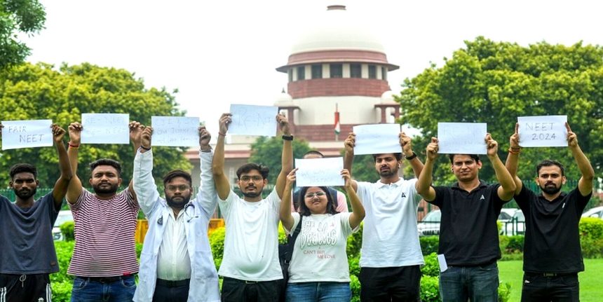 NEET में गड़बड़ी से जुड़ी 40 याचिकाओं पर सुप्रीम कोर्ट में गुरुवार को तीसरी सुनवाई थी। इससे पहले 8 जुलाई और फिर 11 जुलाई को हुई थी। CJI डीवाई चंद्रचूड़, जस्टिस जेबी पारदीवाला और जस्टिस मनोज मिश्रा की डिवीजन बेंच मामले की सुनवाई कर रही है।