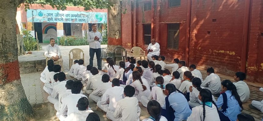 खंड समन्वक संजय कुमार ने बच्चों को जल संरक्षण, बरसात के मौसम में छतों के जल का संरक्षण, FTK द्वारा पानी की शुद्धता व गुणवत्ता, जलजनित बीमारियों, सही पोषण, स्वच्छता अपनाने, खाना खाने से पहले व शौच जाने के बाद साबुन से हाथ धोने, खुले चल रहे नलों पर टूंटी लगाने की जानकारी दी गई ।