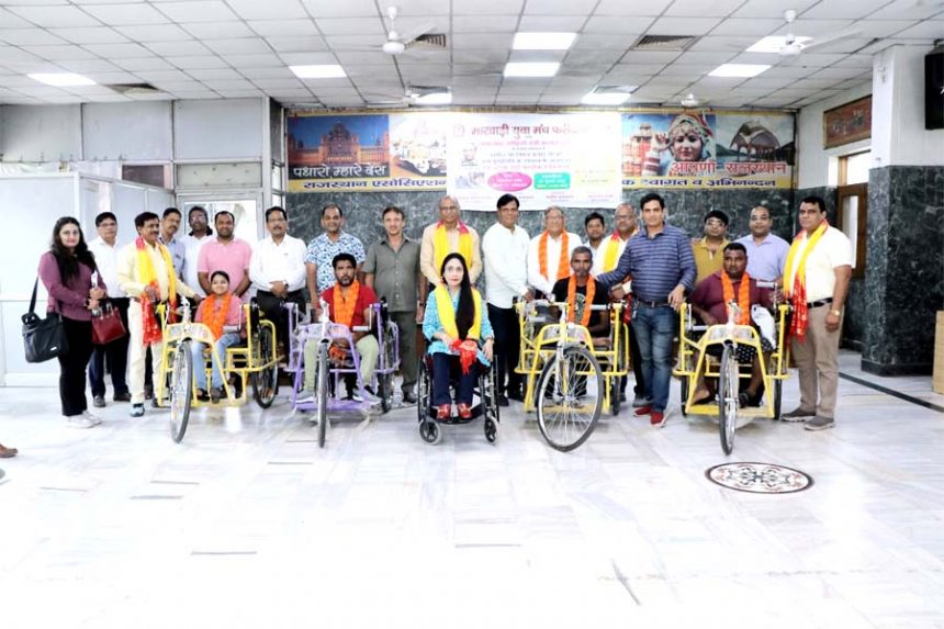 मारवाड़ी युवा मंच अध्यक्ष विमल खंडेलवाल ने बताया कि पूरे भारतवर्ष में मारवाड़ी युवा मंच की 850 शाखों के साथ में मानवता का कार्य किया जा रहा है। समय-समय पर सभी दिव्यांग भाइयों के लिए आर्टिफिशियल लिंब्स, ट्राईसाईकिल वितरण की जाती है। आज के कार्यक्रम में राधेश्याम मोहिनी देवी कनोई ट्रस्ट के स्वर्गीय श्री निर्मल कनोई की जन्म पुण्यतिथि के उपलक्ष में आयोजित किया गया है। जिसमें हमारा उद्देश्य है कि दिव्यांग जनों को हम ट्राई साइकिल देकर आत्मनिर्भर बनाएं कि वे आसानी से अपने गंतव्य तक पहुंच सके और आत्मनिर्भर बन सके।