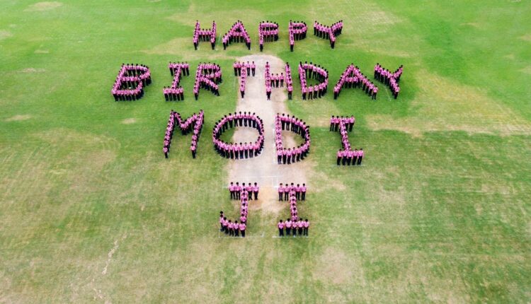 मानव श्रृंखला बनाकर विद्यासागर इंटरनेशनल स्कूल के बच्चों ने दी पीएम मोदी को जन्मदिवस की बधाई