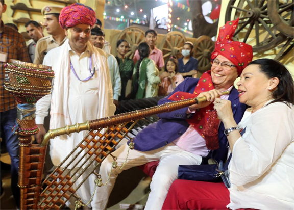 - भारत के रक्षा राज्य एवं पर्यटन मंत्री अजय भट्ट ने कहा कि विरासत ‘आपणा घर’ के माध्यम से हरियाणा की लोक सांस्कृतिक विरासत को लाखों पर्यटकों तक पहुंचा रही है। यहां पर प्रदर्शित की गई हरियाणा की विरासत हरियाणा के इतिहास को तो दर्शाती ही है इसके अतिरिक्त यहां की प्राचीन वस्तुएं हरियाणा की लोक सांस्कृतिक परंपराओं को भी सहेजे हुए हैं। उल्लेखनीय है कि सरकार की रक्षा राज्य एवं पर्यटन मंत्री ने हरियाणवी पगड़ी बंधवा कर ‘आपणा घर’ का अवलोकन किया तथा हरियाणा की सांस्कृतिक विरासत के विषय में गहन रुचि लेते हुए यहां के लोगों की सांस्कृतिक परंपराओं को जाना। इस अवसर पर उनके साथ पर्यटन विभाग के अतिरिक्त मुख्य सचिव श्री एस.के. सिन्हा तथा प्रबंधक निदेशक श्री नीरज कुमार उपस्थित थे।