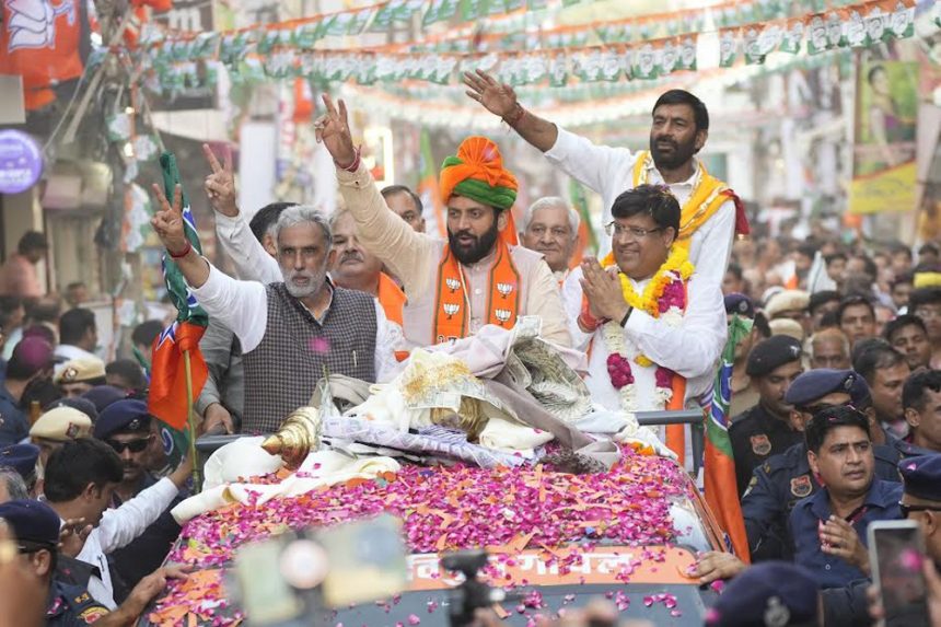 नायब सिंह सैनी पहुंचे विपुल के रोड शो में, की वोट की अपील