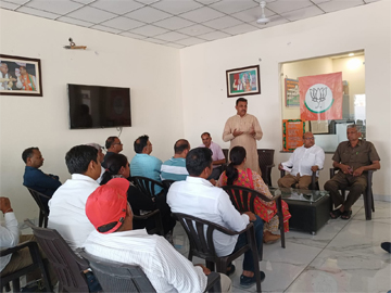 फरीदाबाद 21 मार्च । भाजपा जिला कार्यालय सेक्टर 11 पर भाजपा जिला अध्यक्ष गोपाल शर्मा की अध्यक्षता में भाजपा संगठन की महत्वपूर्ण बैठक सपन्न हुई । बैठक में जिला महामंत्री मूलचंद मित्तल व आर. एन. सिंह मुख्य तौर पर उपस्थित रहे । बैठक में मुख्यमंत्री मनोहर लाल की 27 मार्च को फरीदाबाद जिले में होने वाली हरियाणा प्रगति रैली की तैयारियों के विषय में विस्तृत चर्चा की गई । जिला अध्यक्ष गोपाल शर्मा ने कहा कि प्रदेश के मुख्यमंत्री मनोहर लाल के नेतृत्व में पिछले सात सालों में प्रदेश का चंहुमुखी विकास हुआ है । बेहतर सुशासन व्यवस्था से प्रदेश में भ्रटाचार पर लगाम लगाई गई है और अंत्योदय के मूल मन्त्र पर चलकर गरीब, किसान, पिछड़ों और महिलाओं एवं युवाओं के उत्थान के लिए अनेकों योजनाओं को लागू कर उनका क्रियान्वन कर जन जन को सशक्त करने का काम किया जा रहा है । मुख्यमंत्री के नेतृत्व में हरियाणा प्रदेश खुशहाल हुआ है । मुख्यमंत्री मनोहर लाल हरियाणा के सभी 22 जिलों में स्वयं जनता से संवाद कर उनकी राय लेते हैं और जनता की समस्यायों से रूबरू होते हैं । प्रदेश में अपने दौरों से मुख्यमंत्री यह सुनिश्चित करते हैं कि प्रदेश में बेहतर सुशासन हो और प्रदेश विकास की गति पर और अधिक तीव्रता से अग्रसर हो । इसी को लेकर मुख्यमंत्री 27 मार्च को तिगांव अनाज मंडी में हरियाणा प्रगति रैली के माध्यम से जनता से संवाद करेंगे । रैली के दौरान मुख्यमंत्री फरीदाबाद के लिए कुछ नई व महत्वपूर्ण विकास परियोजनों की घोषणा भी करेंगें । जिला अध्यक्ष गोपाल शर्मा द्वारा मुख्यमंत्री की रैली को सफल करने और बेहतर प्रबंधन के लिए जिले के भाजपा नेताओं और कार्यकर्ताओं को जिम्मेदारी दी गई । बैठक में भाजपा मेवला मंडल के अध्यक्ष हरीश खटाना के आकस्मिक निधन पर उपस्थित कार्यकर्ताओं ने मौन व्रत रख अपनी भावभीनी श्रद्धांजली अर्पित की । जिला महामंत्री मूलचंद मित्तल ने बैठक के दौरान संगठनात्मक वृत्त लिया और उपस्थित जिला पदाधिकारियों, मंडल अध्यक्षों और प्रकोष्ठों व विभागों के संयोजकों को संगठनात्मक विषयों पर मार्गदर्शन दिया और संगठन विस्तार के लिए निरंतर कार्यरत रहने के लिए प्रेरित किया । जिला महामंत्री आर एन सिंह ने पार्टी के आगामी कार्यकर्मों के विषय में अवगत कराया । 23 मार्च को शहीदी दिवस के अवसर पर भाजपा युवा मोर्चा द्वारा शहीद क्रांतिकारी भगतसिंह, राजगुरु व सुखदेव के सर्वस्व बलिदान को स्मरण कर उनको श्रद्धांजली अर्पित की जाएगी और मेरा रंग दे बंसंती चोला का पूरे हरियाणा में उद्घोष किया जायेगा । महीने के आखिरी रविवार 27 मार्च को प्रधानमंत्री नरेन्द्र मोदी के मन की बात कार्यक्रम को भाजपा के सभी कार्यकर्ता प्रत्येक बूथ पर सुने और हर बूथ पर का