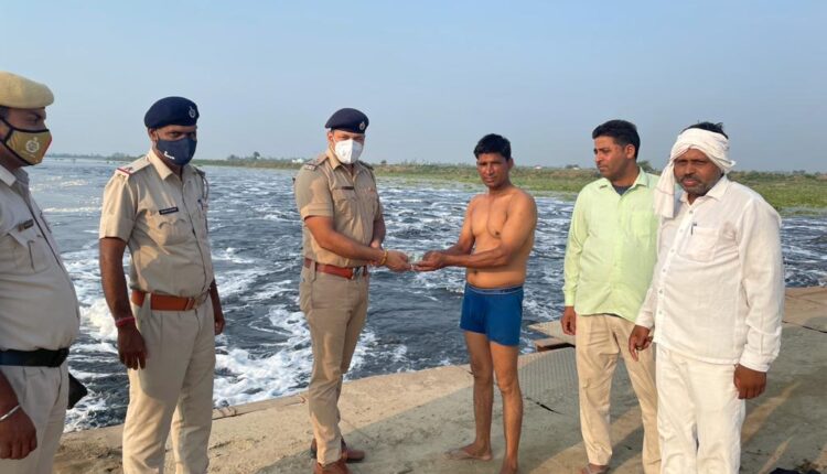 यमुना की मंझधार में कैंटर के साथ बह रहे चालक को पुलिस ने तैराक के सहयोग से बचाया