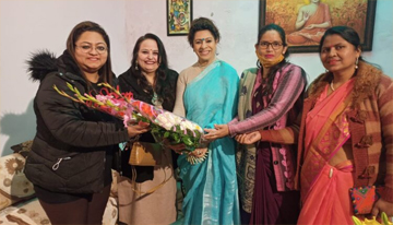 सर्व जागरूक संगठन फरीदाबाद की टीम ने रेनू भाटिया पुष्पगुच्छ भेंट किए