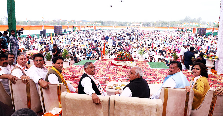 श्री हुड्डा रविवार को फरीदाबाद विधानसभा क्षेत्र के सेक्टर-12 स्थित ग्राउंड में कांगे्रेस के पूर्व प्रत्याशी लखन सिंगला द्वारा आयोजित ‘जन-आक्रोश रैली’ को बतौर मुख्यातिथि संबोधित कर रहे थे। रैली की अध्यक्षता हरियाणा प्रदेश कांग्रेस अध्यक्ष चौ. उदयभान ने की, जबकि राज्यसभा सांसद दीपेंद्र हुड्डा भी मुख्य रूप से मौजूद रहे। रैली में पहुंचने पर लखन कुमार सिंगला व फरीदाबाद विधानसभा क्षेत्र की मौजिज सरदारी ने श्री हुड्डा सहित हरियाणा प्रदेश कांग्रेस कमेटी के अध्यक्ष चौ. उदयभान, राज्यसभा सांसद दीपेंद्र हुड्डा, आफताब अहमद सहित वरिष्ठ कांग्रेसजनों का बड़ी माला व शॉल ओढ़ाकर सम्मान रूपी स्वागत किया। वहीं रैली में उमड़े अपार जनसैलाब से गदगद मुख्यातिथि भूपेंद्र हुड्डा व सांसद दीपेंद्र हुड्डा ने जहां मंच से खुलकर रैली आयोजक लखन सिंगला की जमकर तारीफ की वहीं ज्यादातर वक्ताओं ने रैली की सफलता पर लखन सिंगला को जमीनी नेता की संज्ञा दी।