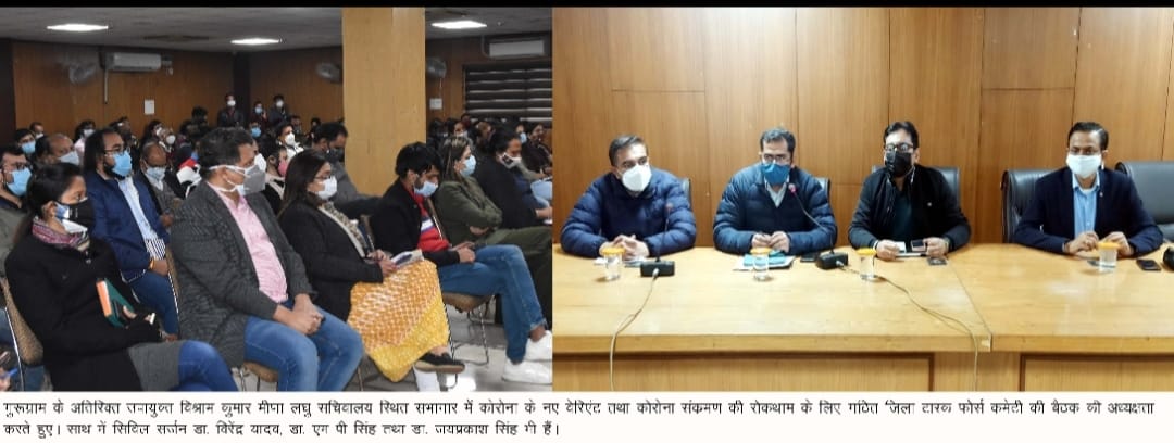 गुरुग्राम | अतुल्य लोकतंत्र / मुकेश बघेल: जिला में कोरोना संक्रमण के बढते मामलों को गंभीरता से लेते हुए आज अतिरिक्त उपायुक्त विश्राम कुमार मीणा की अध्यक्षता में कोरोना संक्रमण की रोकथाम को लेकर गठित जिला टास्कफोर्स कमेटी की बैठक आयोजित की गई। इस बैठक में सरकारी व निजी अस्पतालों के प्रतिनिधियांे ने भाग लिया। बैठक मंे सिविल सर्जन डा. विरेंद्र यादव भी उपस्थित रहे। इस बैठक में कोरोना संक्रमण की रोकथाम संबंधी कई महत्वपूर्ण विषयों पर चर्चा की गई।