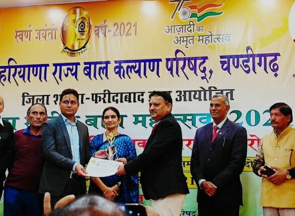 हरियाणा राज्य बाल कल्याण परिषद , शाखा-फरीदाबाद द्वारा अक्टूबर व नवम्बर माह 2021 के दौरान जिला स्तरीय , मण्डल स्तरीय व राज्य स्तरीय बाल महोत्सव 2021 का आयोजन किया इस दौरान सुशील कण्वा प्रधानाचार्य ने बतौर नोडल अधिकारी शिक्षा विभाग व निर्णायक मंडल में अहम भूमिका निभाई जिसके लिए जिला उपायुक्त फरीदाबाद श्री जितेंद यादव जी ने आज बाल भवन परिसर फरीदाबाद में भव्य कार्यक्रम में सम्मानित किया । जिला बाल कल्याण अधिकारी श्री कमलेश शास्त्री जी व समस्त बाल भवन के पदाधिकारियों का हार्दिक आभार