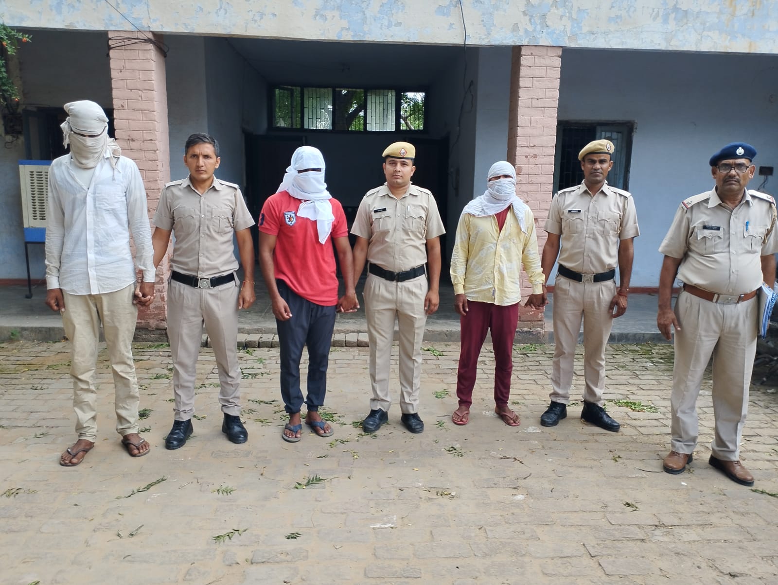 ▪️उप-निरीक्षक अमित कुमार, प्रभारी अपराध शाखा फरुखनगर व थाना फरुखनगर, गुरुग्राम की पुलिस टीम ने संयुक्त कार्यवाही करते हुए इस वारदात को अन्जाम देने वाले तीन आरोपियों को कल दिनांक 22.08.2022 को काबू करके अभियोग में नियमानुसार गिरफ्तार किया गया। आरोपियों की पहचान आदित्य (25 वर्ष), गौरव (24 वर्ष) व दीपक (24 वर्ष) के रुप में हुई।