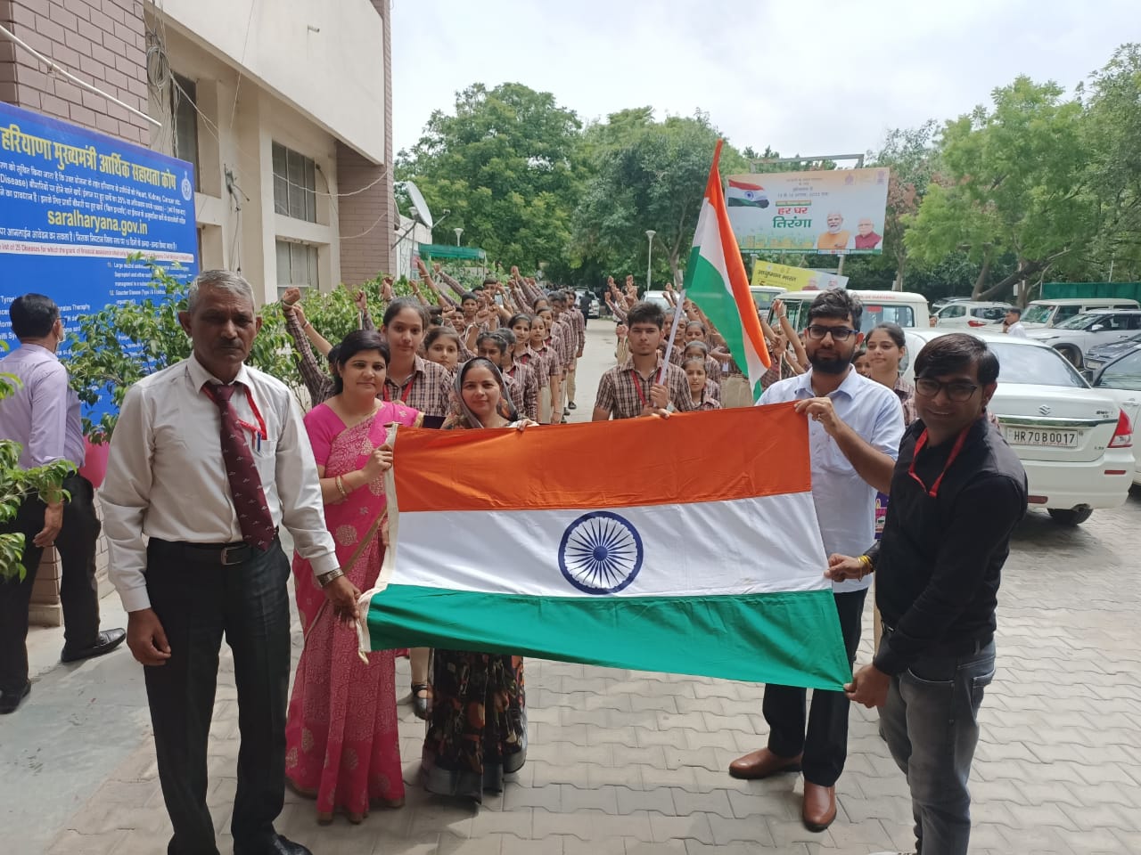 Gurugram ( अतुल्य लोकतंत्र ): मुकेश बघेल/सरकार के हर घर तिरंगा अभियान को लेकर सोमवार को जे जे स्कूल ऑफ एजुकेशन फर्रूखनगर के छात्रों ने प्रधानाचार्या मिनाक्षी के नेतृत्व में नगराधीश दर्शन यादव को राष्ट्रीय ध्वज सहसम्मान सौंप कर अभियान का शुभारम्भ किया I